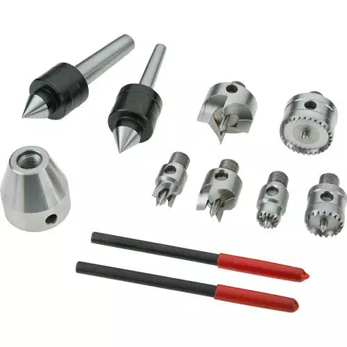 The T10501 Wood Lathe Center Kit provides a variety of centers for the specific weight, size, and wood type of the workpiece to be turned.