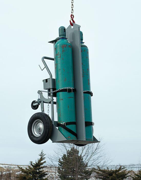 Move hand truck easily around a construction site, into locations with poor accessibility, or from floor to floor with this hoist-equipped design. Extensive structural framing with 0.375-in (10-mm) thick hoist plate makes these units safe when lifted by hoist rigs.