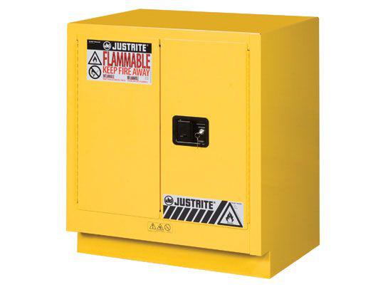 Protect workers, reduce fire risks, and improve productivity by storing flammable fuels and chemicals in code-compliant safety cabinets. Designed to meet OSHA and NFPA standards, Sure-Grip® EX cabinets are constructed of sturdy 18-gauge (1-mm) thick double-wall, welded steel with 1-1/2” (38-mm) of insulating air space for fire resistance. High-performance, self-latching doors close easily and securely for maximum protection under fire conditions. Fail-safe closing mechanism ensures three-point stainless steel bullet latching system works every time.