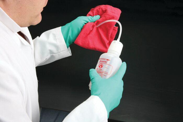 Made of polyethylene with a stainless steel wire, squeeze bottles provide safe dispensing of flammable liquids directly on small components or subassemblies with a minimum of over-spray. Squeeze the bottle to produce a fine stream of liquid. Stem can be shaped to dispense into hard-to-reach areas.