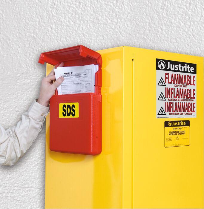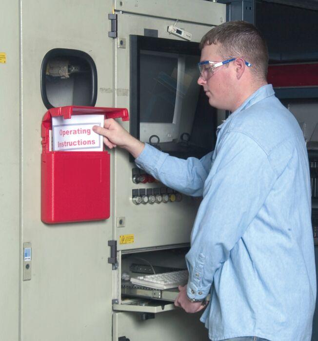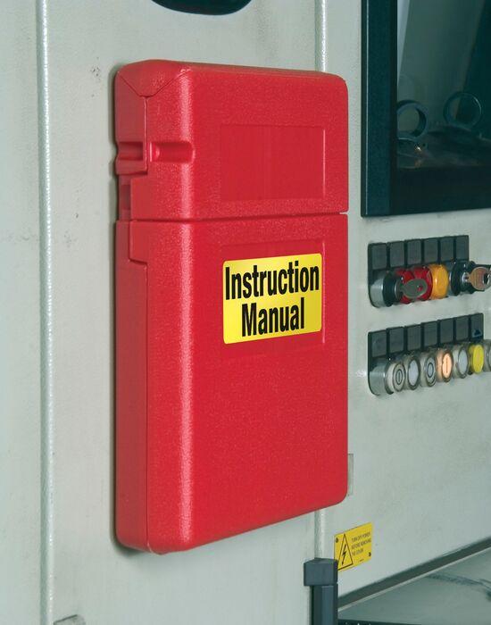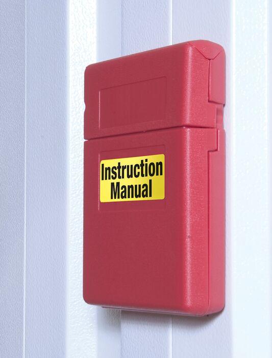 Safely store manuals and documents in these weather-resistant polyethylene storage boxes. Each box is bright red for high visibility and features a smooth area for labels. Use the label pack provided that includes two blank labels and labels printed "SDS" and "Instruction Manual". Boxes come with heavy-duty double-sided tape for easy installation. Accepts padlock when security is a concern.
