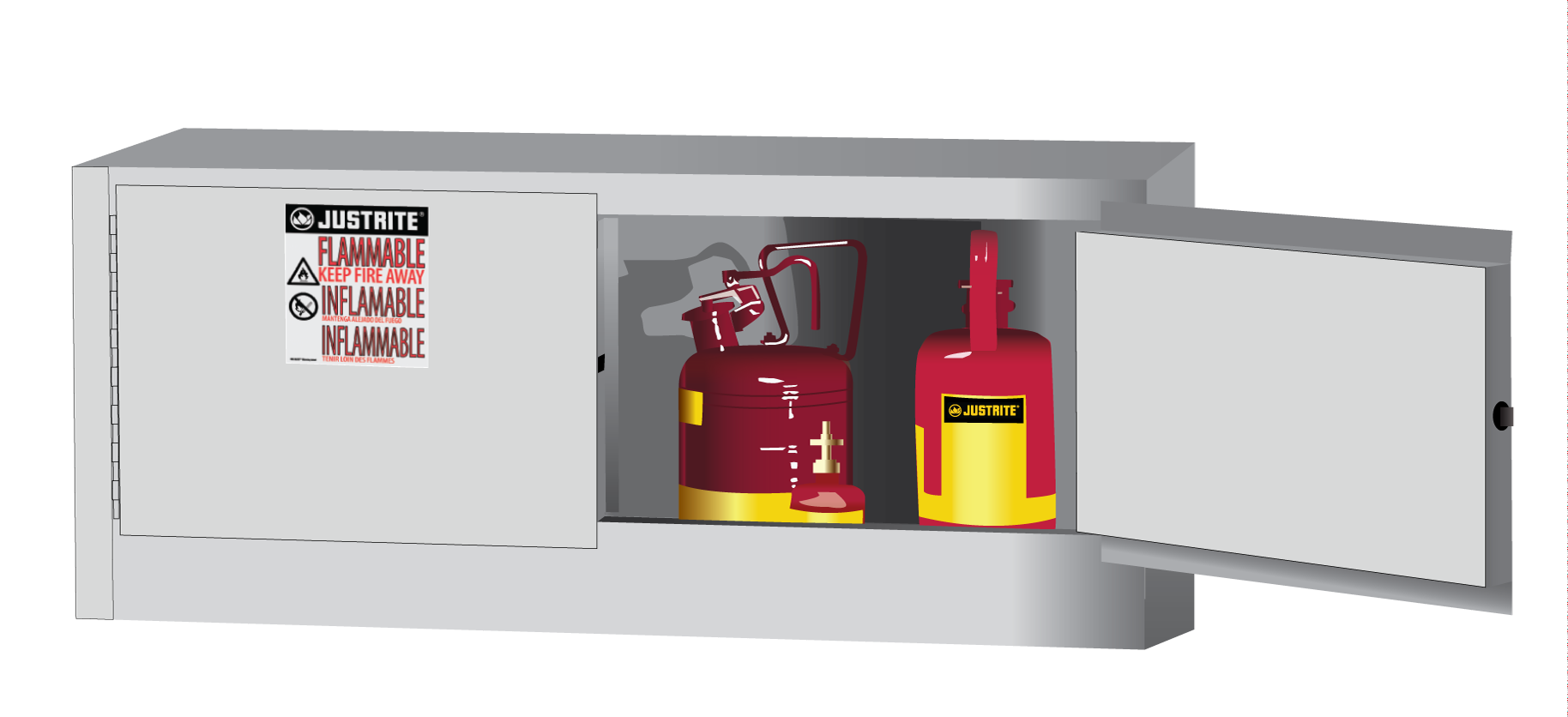Create a safe storage for flammables without taking up valuable floor space. Designed to mount on top of 30- and 45-gallon (114- and 170-L), manual or self-closing Sure-Grip® EX cabinets. They can also be used independently as a benchtop cabinet or stacked to provide additional storage. Turn it into a wall-mount cabinet with by ordering a wall hanger assembly 25950. These cabinets have all the great features and benefits of our classic cabinets as outlined below.