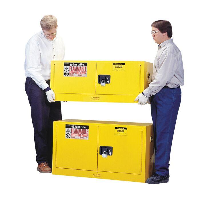 Low-height design allows for storage of flammables on bench tops or on top of 30- or 45-gal (114- or 170-L) cabinets