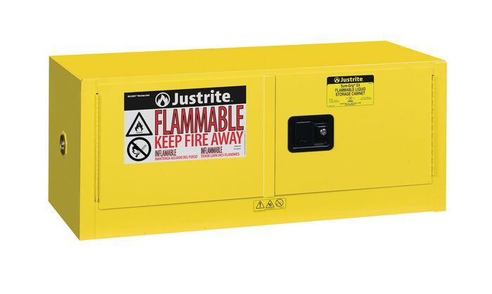 Create a safe storage for flammables without taking up valuable floor space. Designed to mount on top of 30- and 45-gallon (114- and 170-L), manual or self-closing Sure-Grip® EX cabinets. They can also be used independently as a benchtop cabinet or stacked to provide additional storage. Turn it into a wall-mount cabinet with by ordering a wall hanger assembly 25950. These cabinets have all the great features and benefits of our classic cabinets as outlined below.
