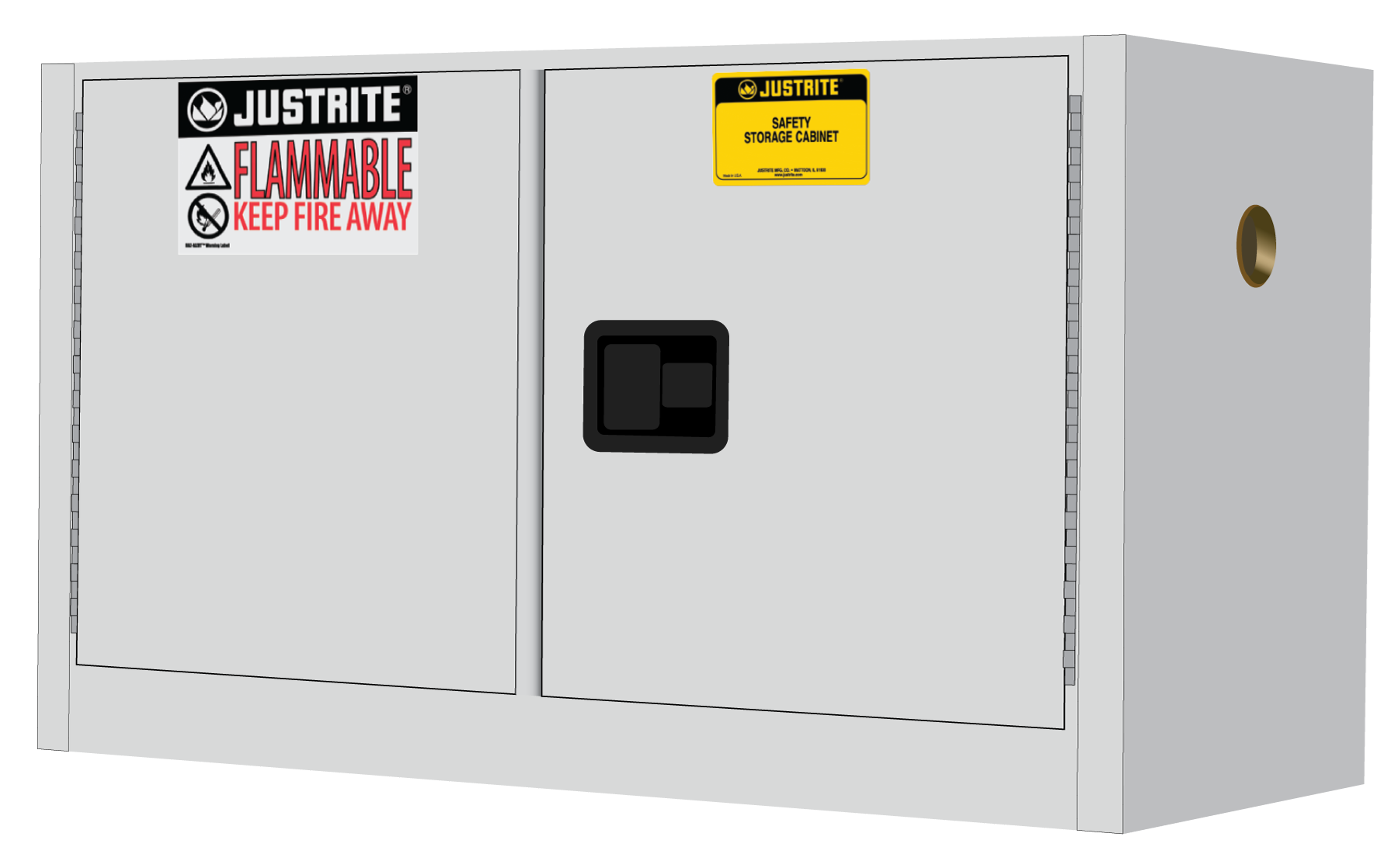 Create a safe storage for flammables without taking up valuable floor space. Designed to mount on top of 30- and 45-gallon (114- and 170-L), manual or self-closing Sure-Grip® EX cabinets. They can also be used independently as a benchtop cabinet or stacked to provide additional storage. Turn it into a wall-mount cabinet with by ordering a wall hanger assembly 25950. These cabinets have all the great features and benefits of our classic cabinets as outlined below.