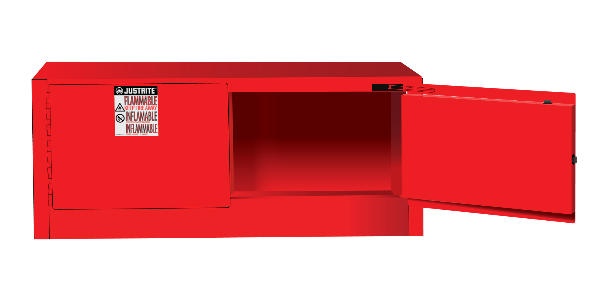 Low-height design allows for storage of flammables on bench tops or on top of 30- or 45-gal (114- or 170-L) cabinets