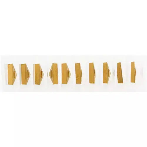 These 60° positive triangle screw-on type inserts are titanium nitride coated C-5 carbide for general purpose machining of steel and steel alloys. Each features single sided chip breaker and 7° relief angle.