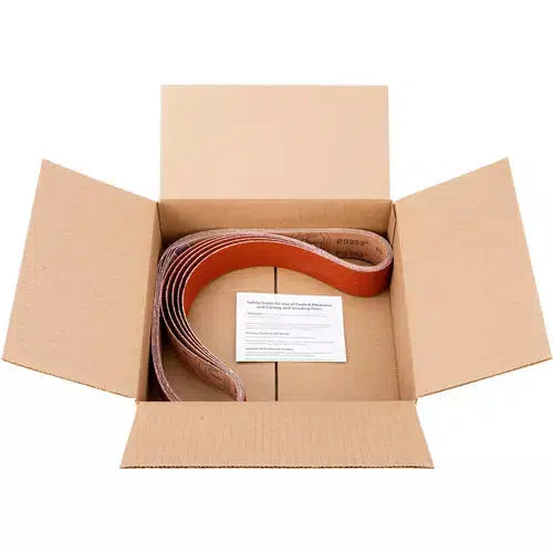 If you’re looking for a belt for aggressive grinding, sanding or deburring look no further than these belts. These ceramic alumina belts are the best sanding belt for use on all metals (especially heat sensitive metals like stainless steel, nickel alloys and cobalt alloys), wood, fiberglass, plastics, and painted surfaces. Made with the newest abrasive technology, ceramic abrasive grains, these remain sharp throughout their useful life and cool during use. The ceramic grains fracture with use revealing new sharp edges. Additionally, a grinding agent prevents loading and heat buildup. Each of these features prolongs the life of the belt and results in the most consistent grind. Ceramic belts last longer than equivalent belts made with other abrasive grains. MADE IN THE USA. Specifications: